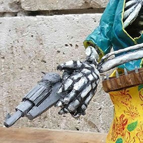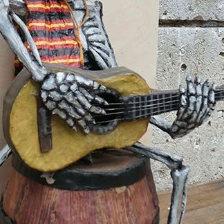 Elles apparaissent alors sous forme de gravures, poèmes ‘’moribonds’’ et satiriques; friandises, (crânes en sucre); ou encore de réalisations plastiques; des statuettes de squelettes de ‘’cartonería’’ (papier mâché), qu’il serait plus juste de qualifier de ‘’Calacas’’ (la représentation d’un personnage entier sous forme de squelette)...